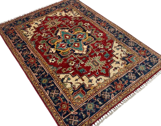 Majestic Medallion is a stunning hand-knotted Oushak Persian rug, featuring a regal red medallion, intricate motifs, and navy blue, gold, and green highlights. Crafted from premium wool for comfort and lasting beauty, it’s ideal for lounge rooms, dining spaces, and entryways. Add unmatched heritage, colour, and warmth to your home with this vibrant statement piece.