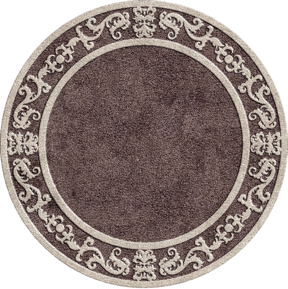 Bring timeless grandeur to your interiors with Royal Laurel, a circular rug that exudes regal elegance. Crafted with great care and artistic flair, this classic design features a deep plum field framed by a meticulously carved ivory scroll border—perfect for making a stately statement in any room. With a plush 1.2 cm pile height and available in multiple sizes, it effortlessly blends comfort and sophistication. Ideal for formal settings, entryways, dining rooms or under a centre table, Royal Laurel’s soft texture and intricate detailing elevate your space with an aristocratic charm.